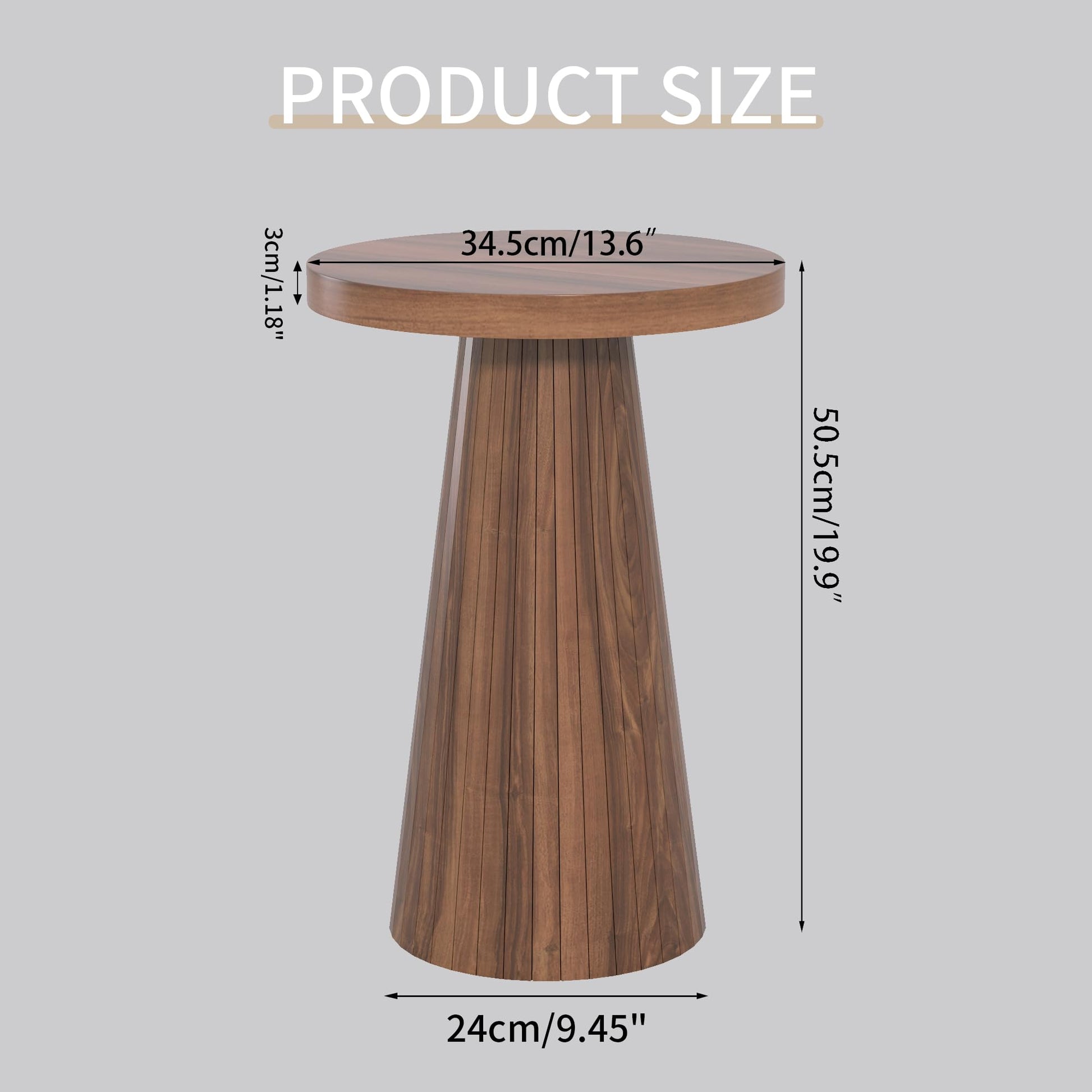Small Round Pedestal Side Table, Wooden End Table for Living Room, Fluted Drink Table for Small Space, Modern Plant Stand Accent Table for Sofa Couch, 13.6 inch (Walnut)