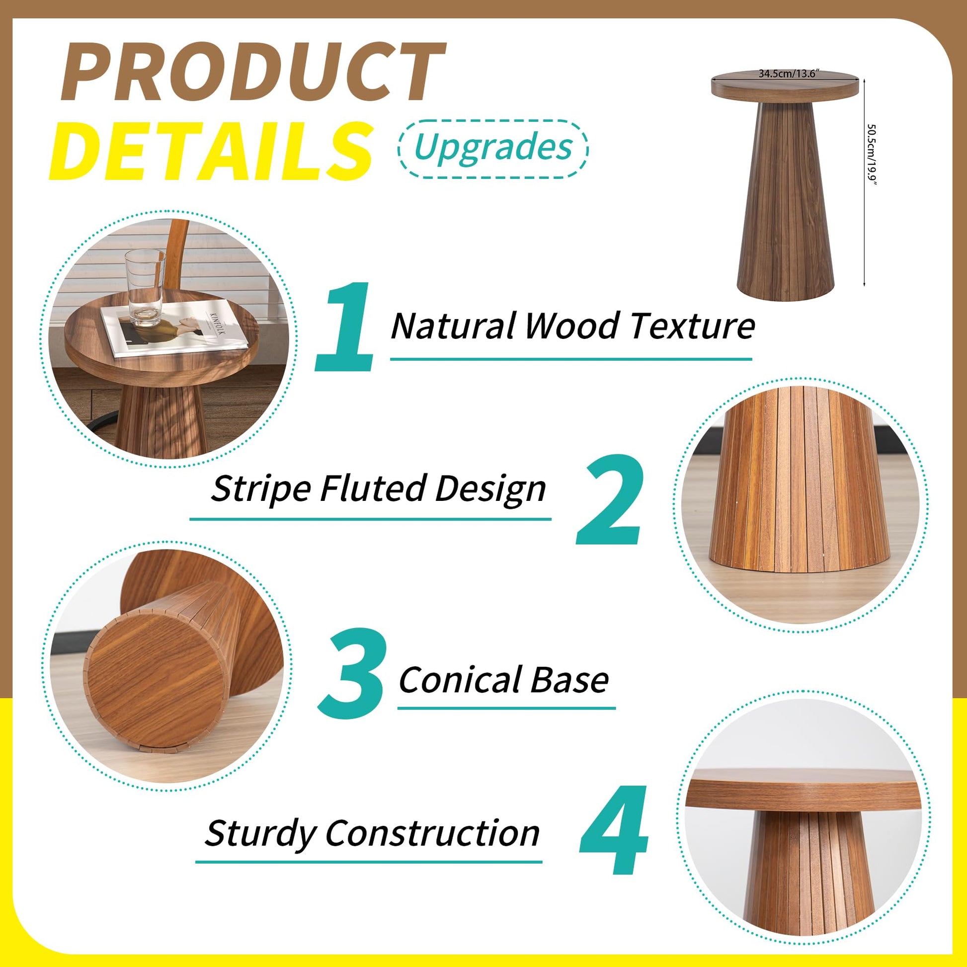 - Stylish and Simple: The pedestal side table features a fluted design and elegant wood grain texture to add visual appeal. Round wood top set on pedestal tapered base makes the wood end table more prominent in the vintage and farmhouse style. It is the ideal choice for minimalist furniture, enhancing the ambiance of your room