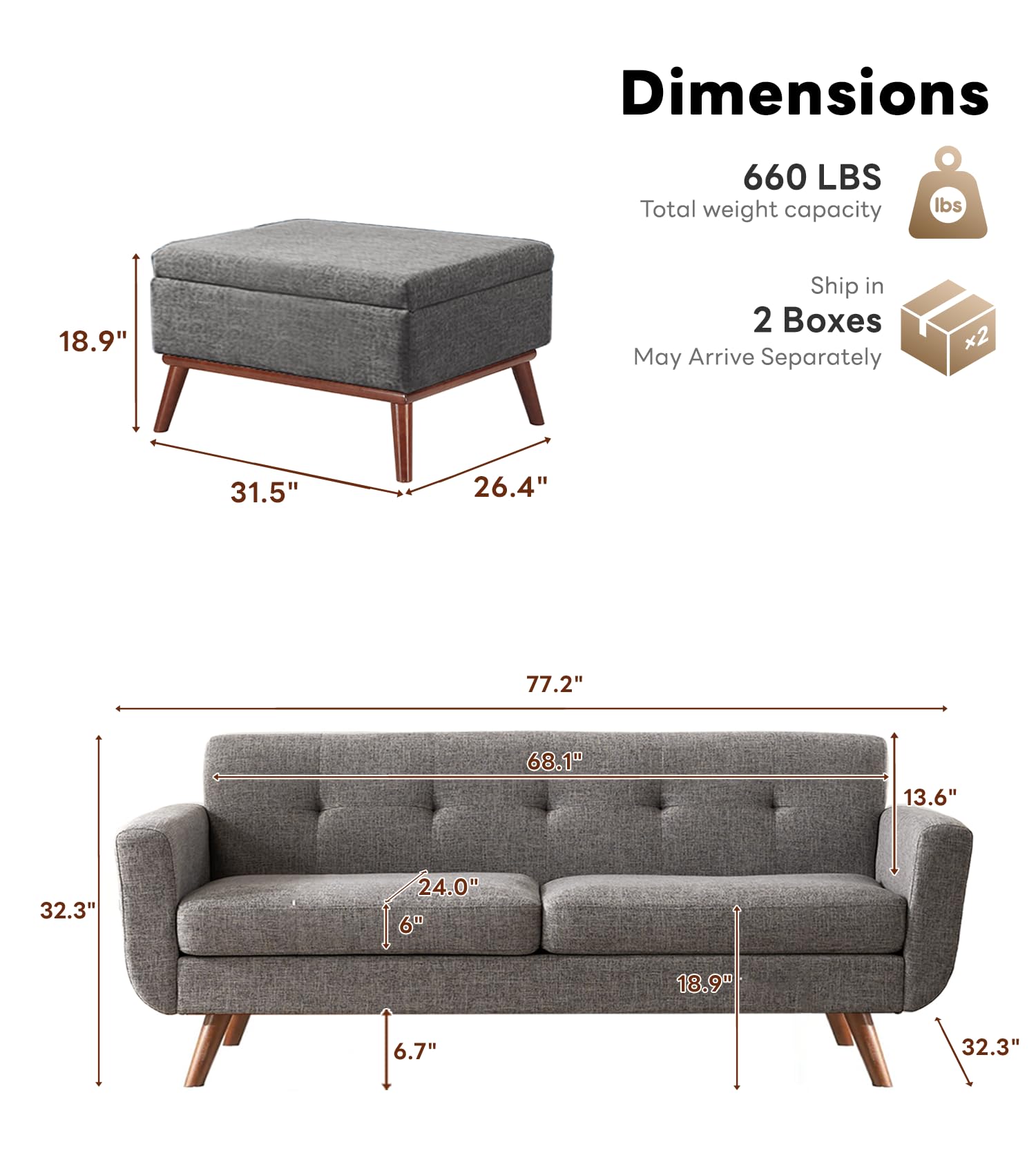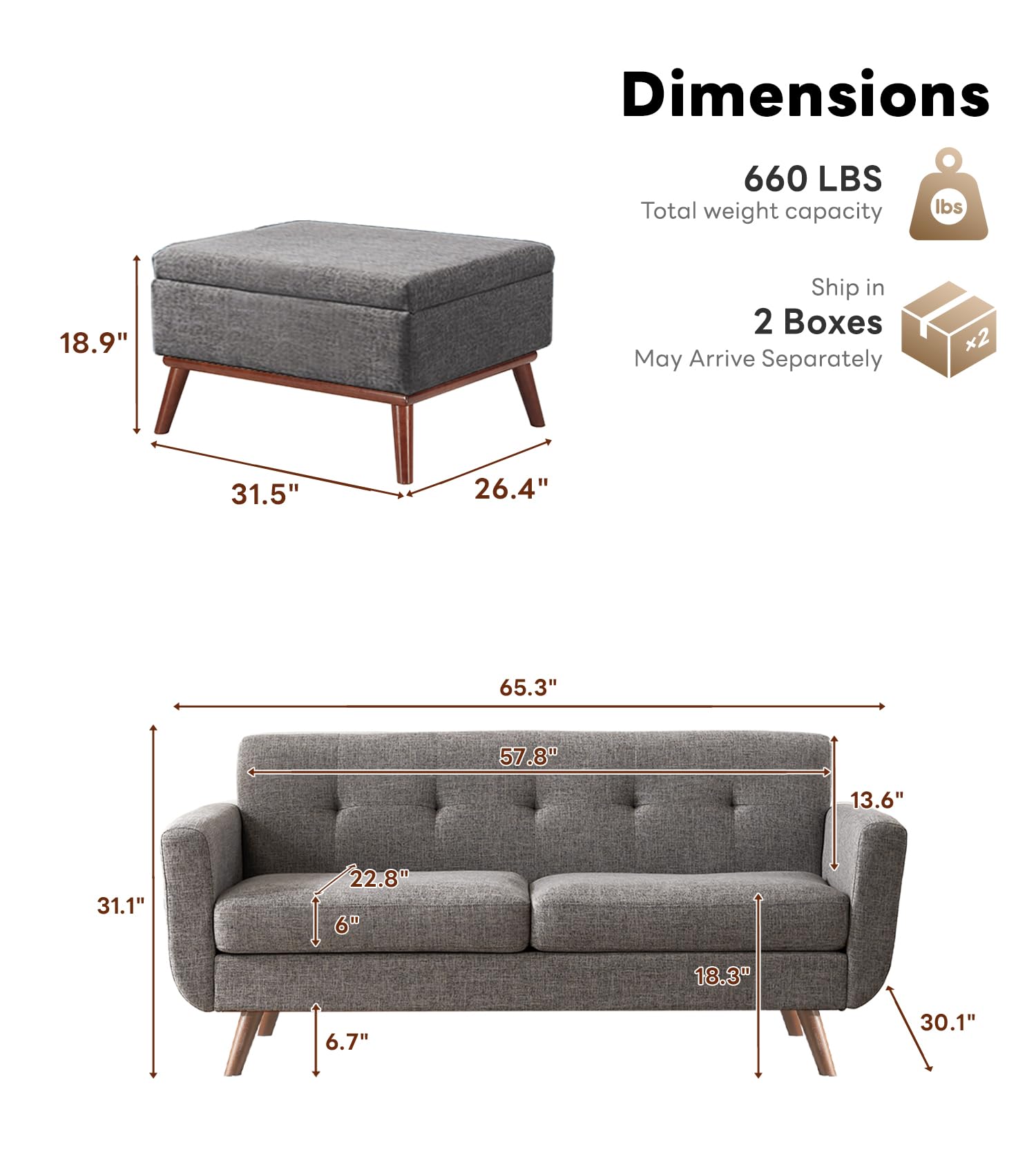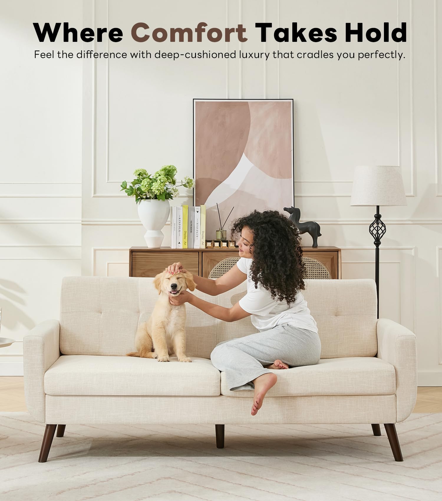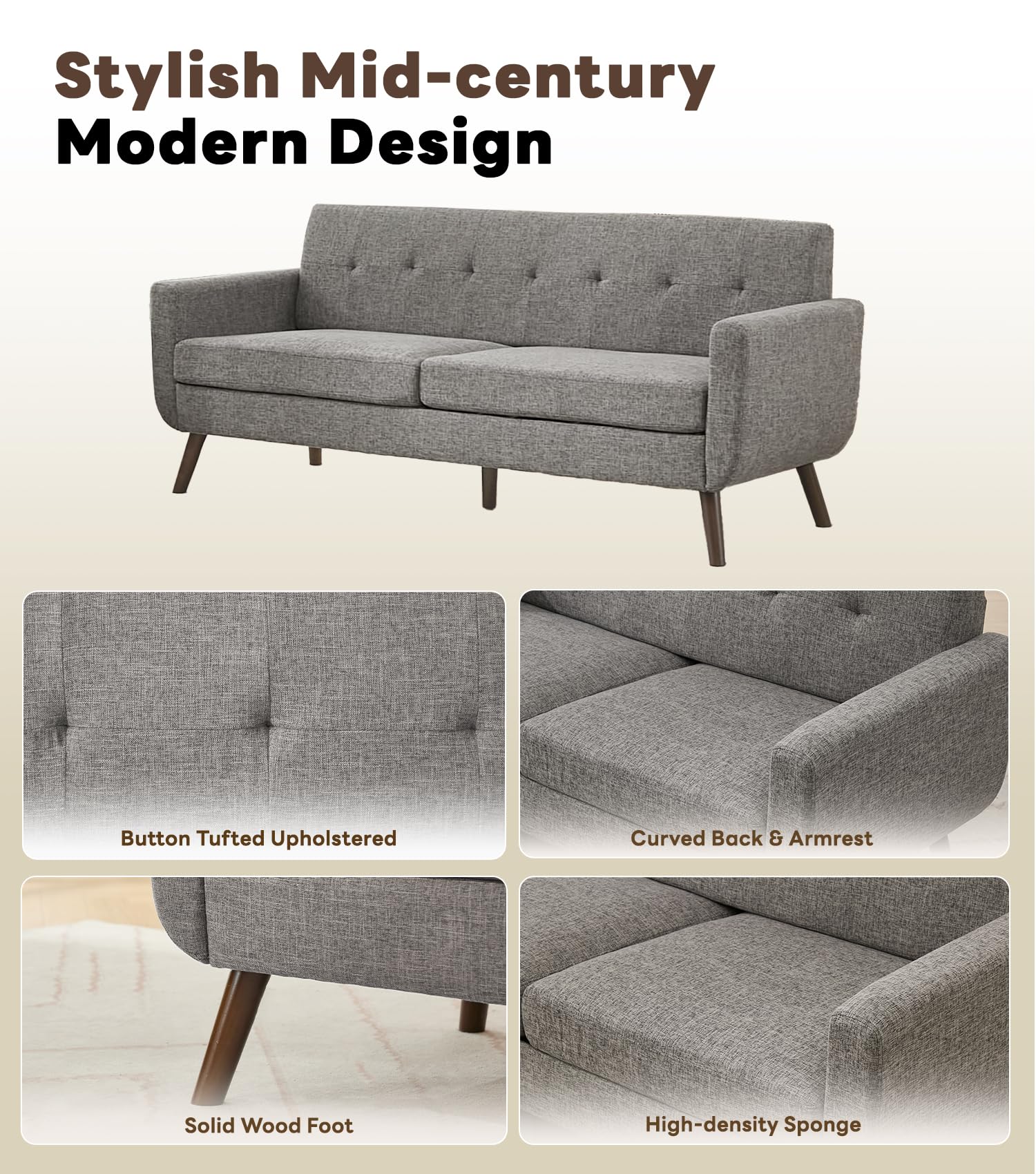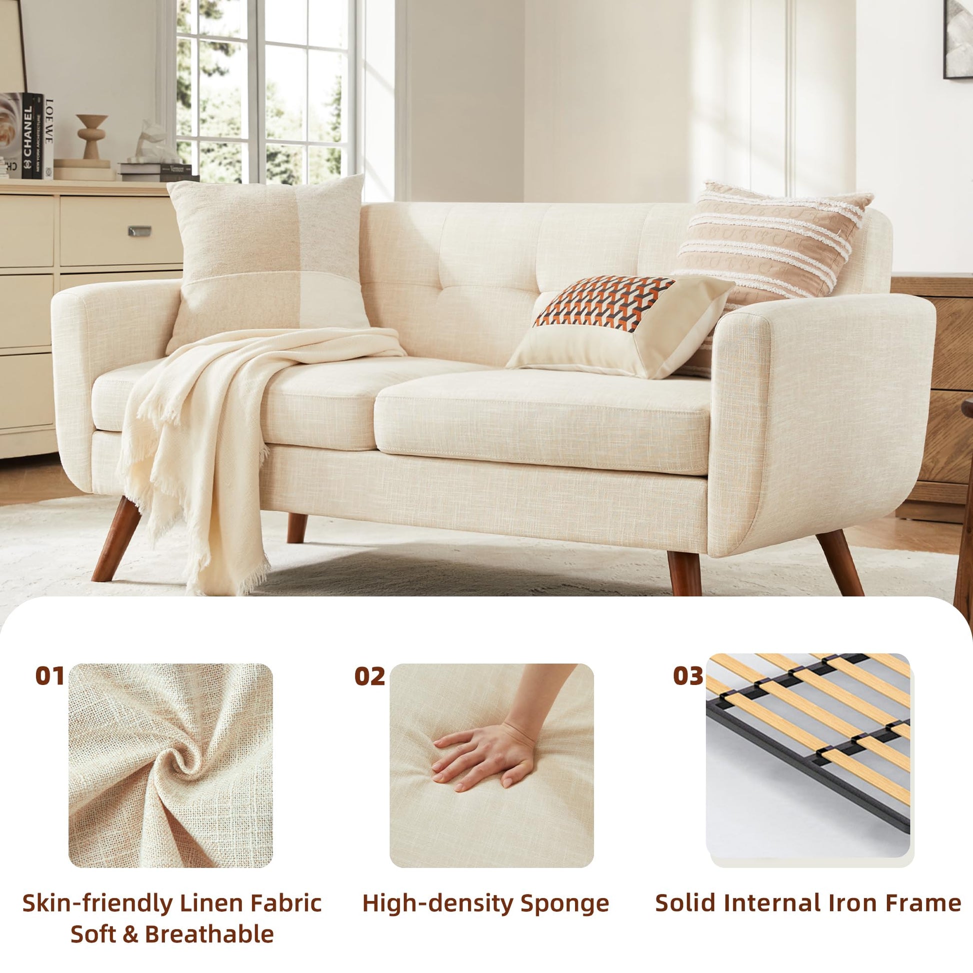 - TIMELESS APPEAL: Stylish tufted linen upholstery with a mid-century low-profile design brightens your whole home with modern craftsmanship and classic aesthetics. The small loveseat provides stylish and functional furniture for your apartment, adding more features to your home while decorating the room.