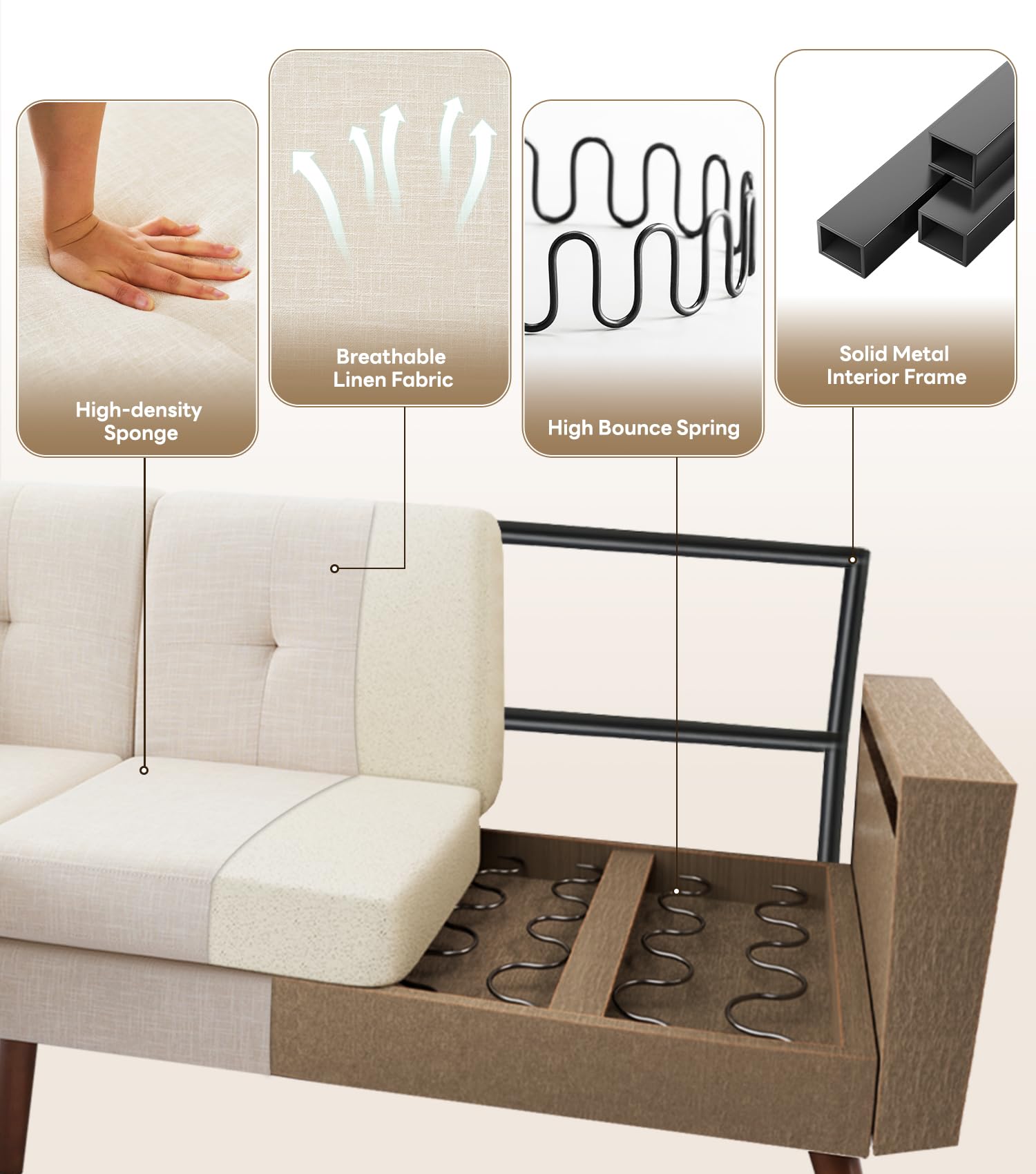 - STURDY AND DURABLE : You don’t have to worry about its durability! Our whole small sofa with a sturdy iron frame and high bounce springs can easily support the weight of 660 lbs. The solid wood legs with padding under the feet protect your floors from scuffs and scratches. So it will last a long time in your living space.