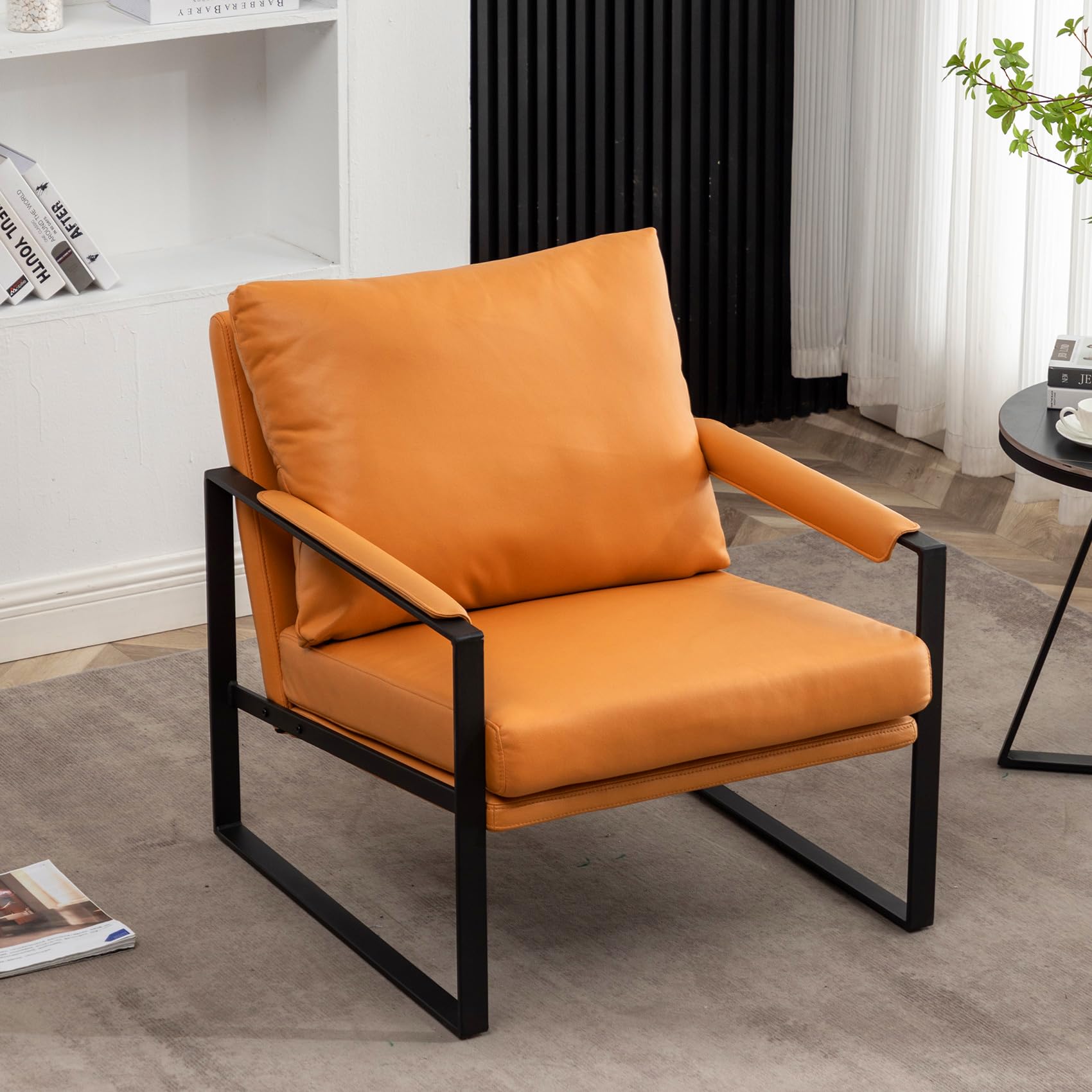 UNICOO Faux Leather Metal Frame Accent Chair - Modern Accent Chairs for Living Room, Bedroom, or Office - Armchairs Living Room Chairs Leisure Chair Reception Chair (ZKL-239K-CM Hermes Orange)