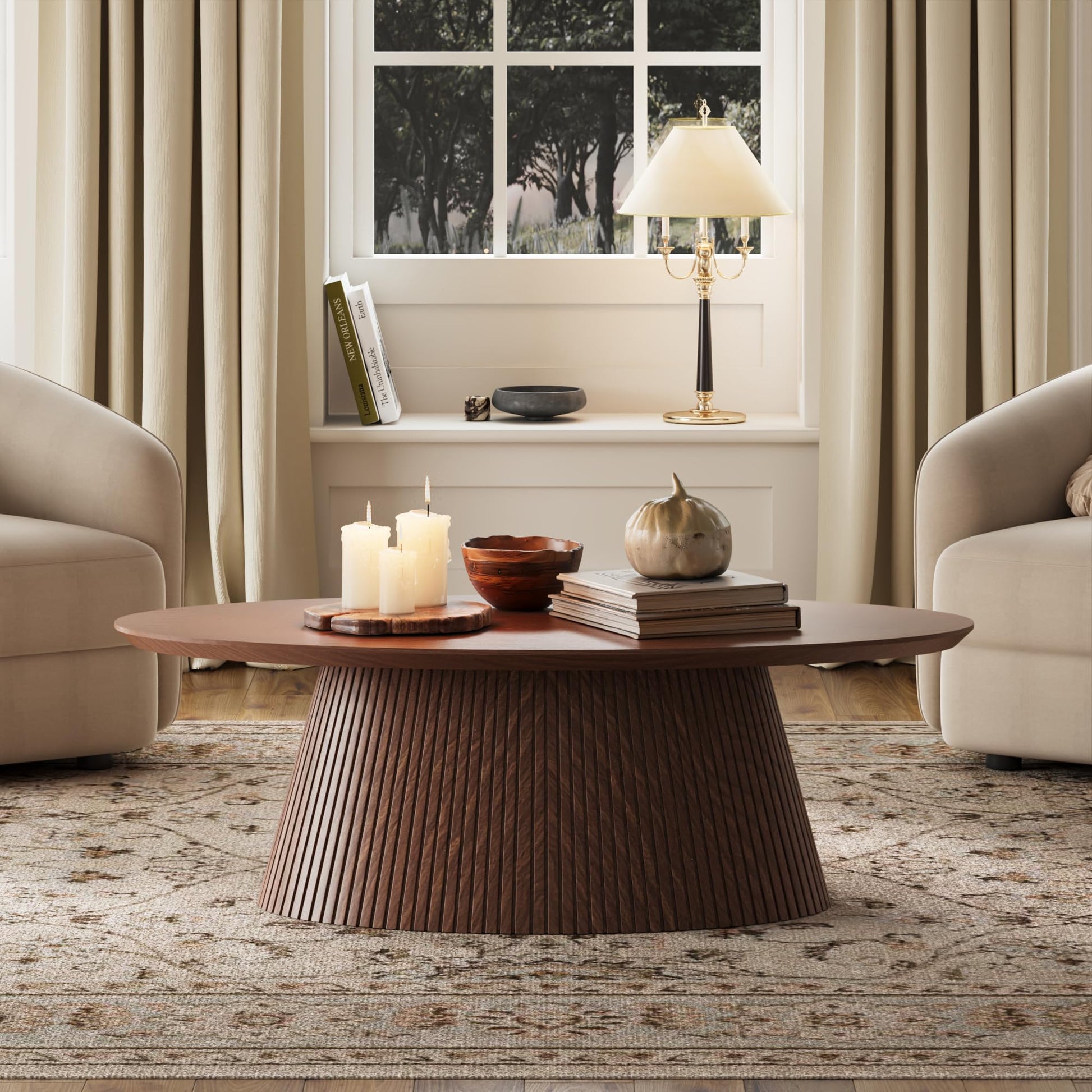 - 【Unique Visual Perception, Stable Support】The fluted coffee table features a unique tapered base and fluted panel that not only provide stability and support, but also creates a unique visual appearance that makes your room stand out. The base provides non-slip feet mats to prevent the center table from sliding on the floor and protect the floor from scratches
